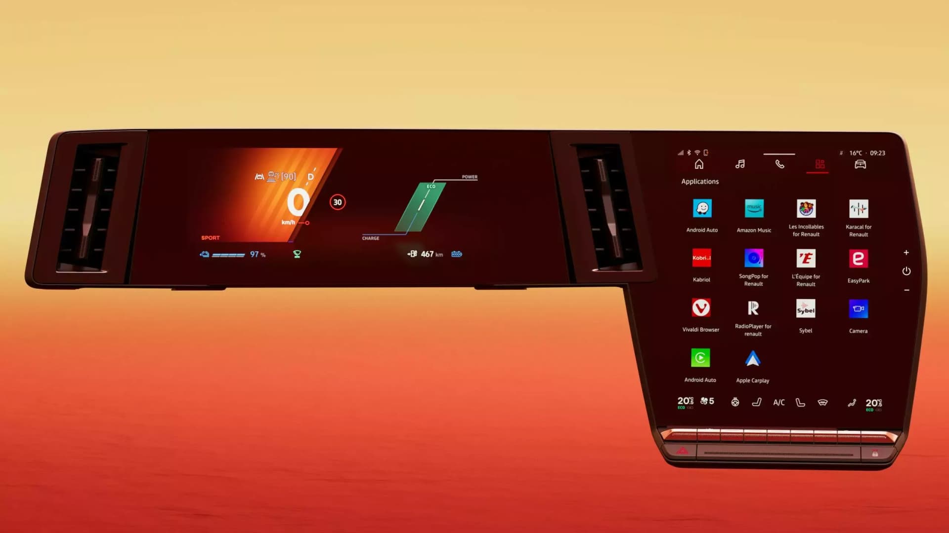 Renault Megane esprit Alpine fremhever sin sportslige karakter med en matt shadow grey-lakk, et esprit Alpine-emblem og dens unike 20" lettmetallfelger. Førermiljøet er har fått sitt preg i form av sportspedaler, polstring med blå søm og Alpine-logoen.